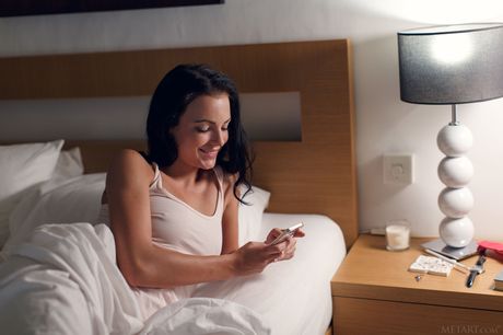 Met Art: Slender teen Sapphira A removes her bikini and poses nude on the bed