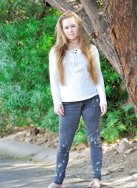 FTV Girls: Slim american youthful Madison Chandler in jeans is foot fetishist outdoor
