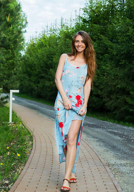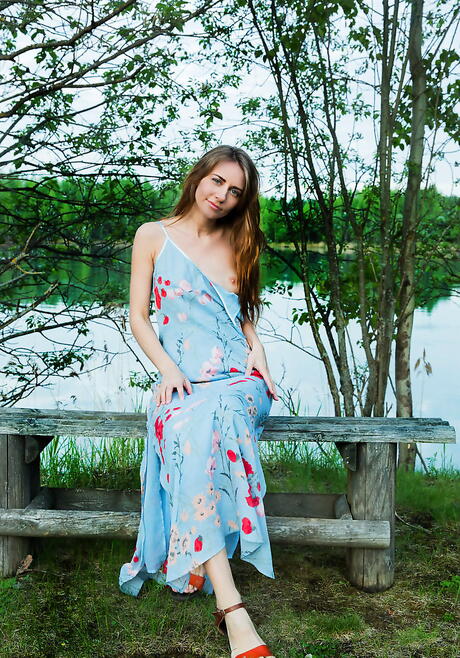 Met Art: Slim redhead young Olwen unveiling tiny tits and spreading her legs outdoor