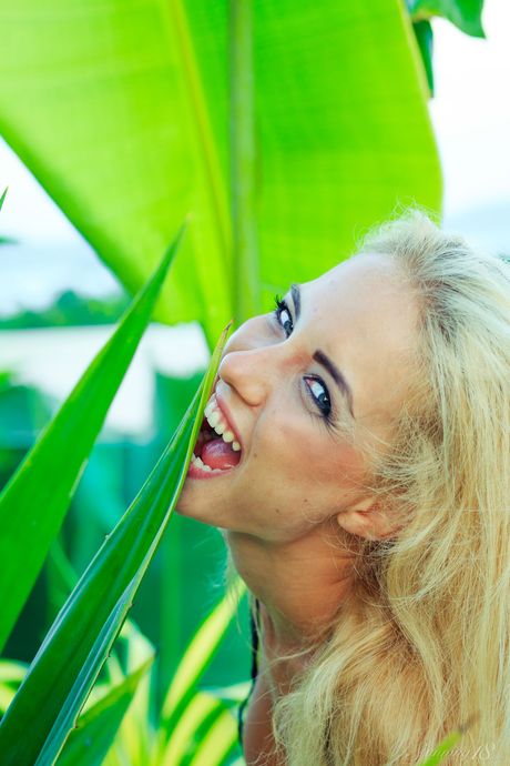Stunning 18: Sporty blonde Delilah G strips & poses naked in a chair to show her big tits