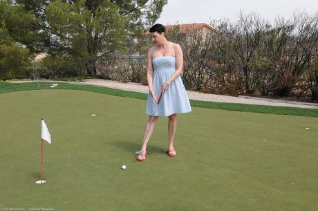 All Over 30: Sporty MILF Kali Karinena strips naked & spreads her pussy on a golf course
