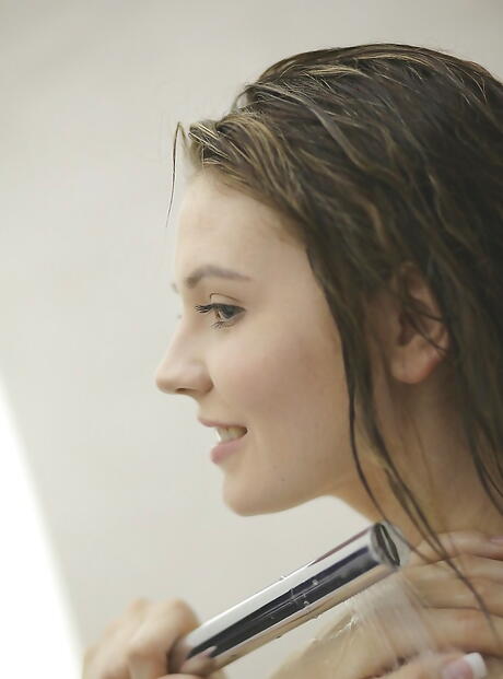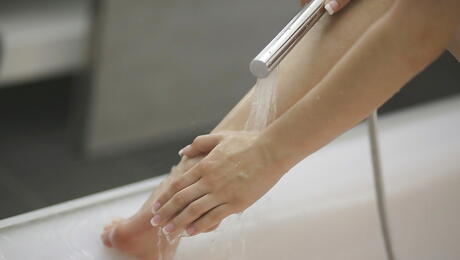 21 Naturals: Stunning bombshell Timea Bella exposes her ass in and masturbating in shower