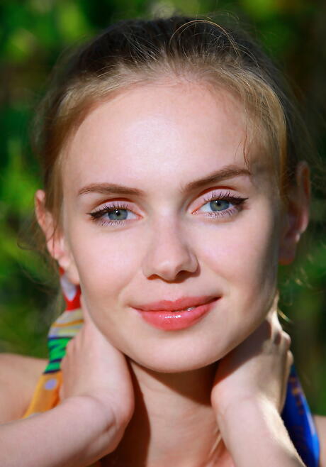 Met Art: Stunning teen Honey Liz baring tiny tits and bald pussy outdoor