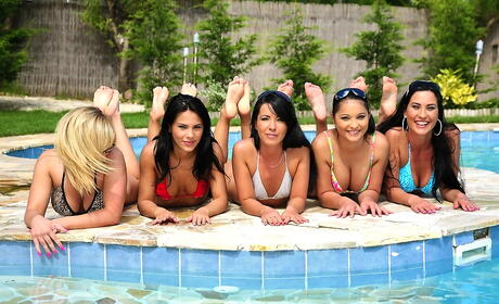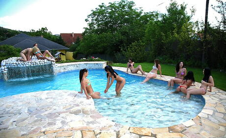 Euro Sex Parties: Sultry beauties Amabella, Jane, Patricia Dream and Nilla in superb lesbian orgy at pool