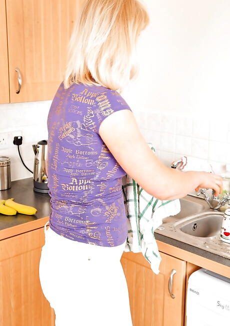 Karups Older Women: Sultry blonde mature Suzy Wilde showing big titties and masturbating with dildo in kitchen