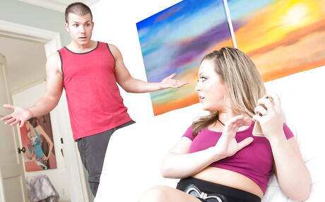 Mommy Blows Best: Sultry cougar Carmen Valentina in sexy skirt sucking deep huge rod and enjoys a cum shot in mouth