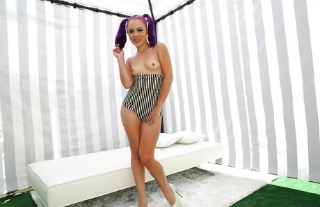 Anal Acrobats: Svelte american milf Kristina Rose in bikini exhibits tiny tits and plays with toy outdoor