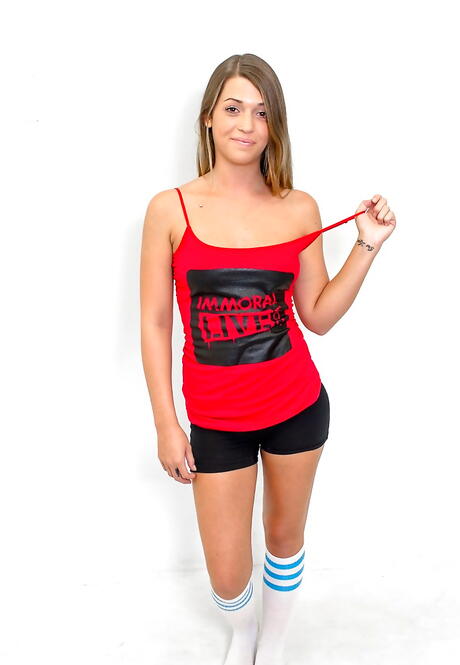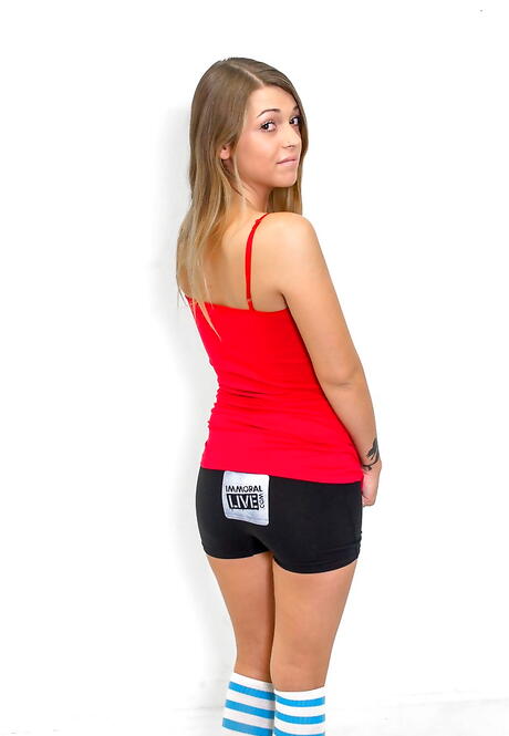 Immoral Live: Svelte british youthful Jenna Leigh in shorts showing big titties and hot ass