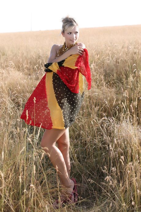 Met Art: Svelte teen Jenni A strips naked in a field of wildflowers during a solo
