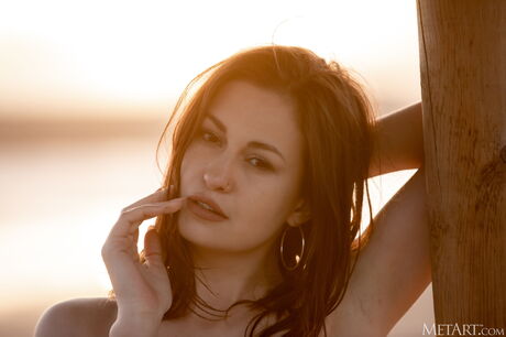 Met Art: Svelte teen Lilian A gets naked on a beach chair at sunset