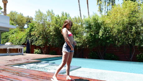 Teens Like It Big: Sylphlike american youthful Kylie Quinn exposes tiny tits and sexy butt near the pool