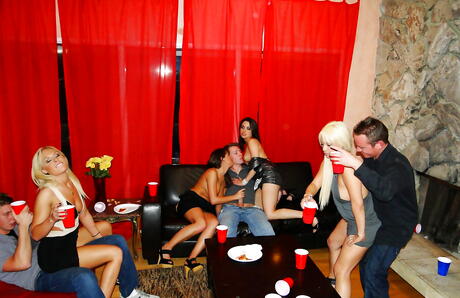 Real Slut Party: Sylphlike babes Chloe Caine, Jamey Janes and Lizz Taylor take part in awesome orgy on the party
