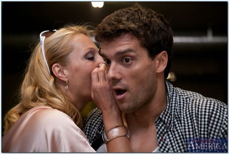 Naughty America: Tattooed blonde Brenda James gets her face covered in cum after sex