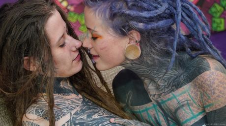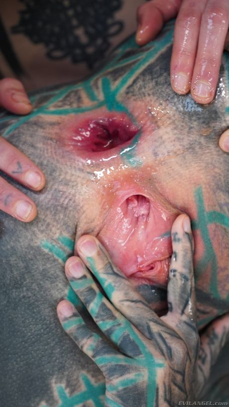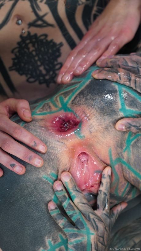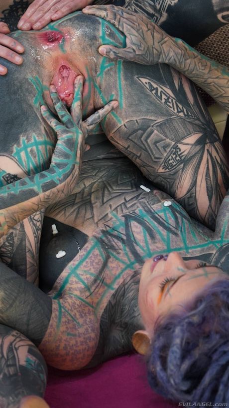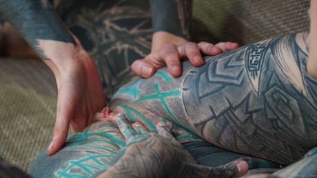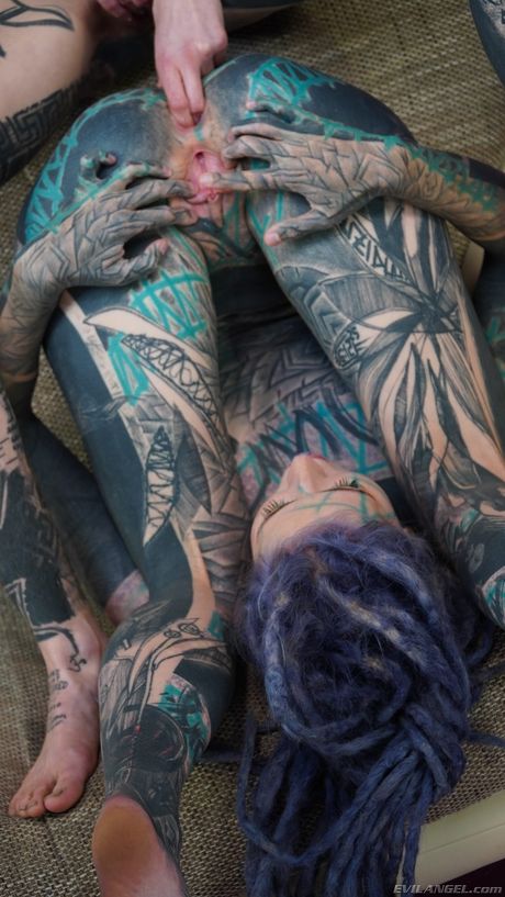 Evil Angel: Tattooed lesbians Anuskatz & Ceci Milkymouzz toying each others assholes