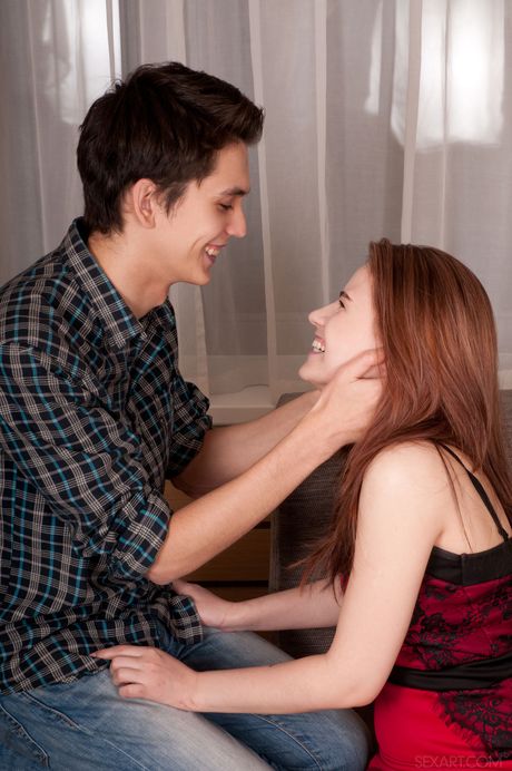 Sex Art: Teen lesbians Jacque & Ultima kiss before having sex on a bed