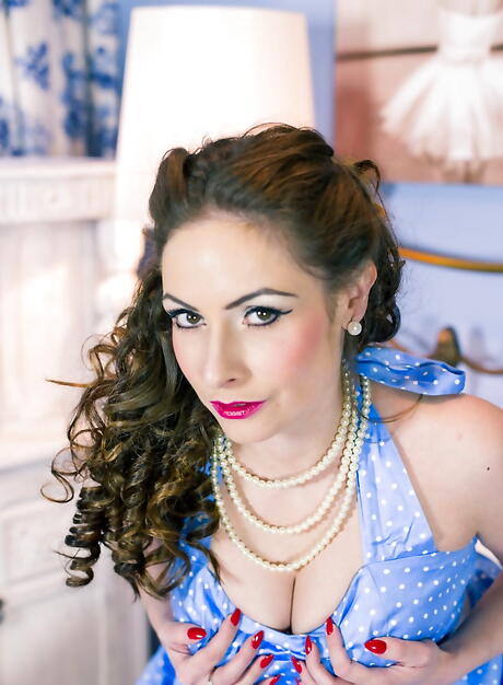 Anilos: Tempting british milf Sophia Delane in hot lingerie baring big tits and jerking off