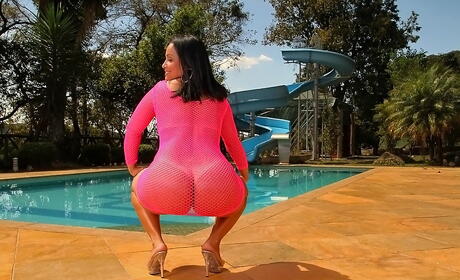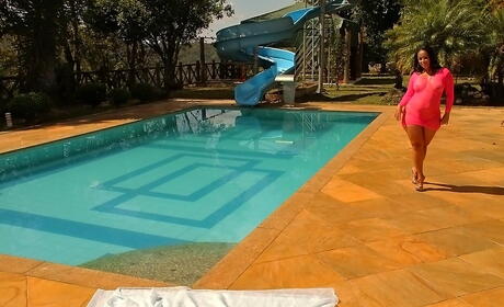 Mike in Brazil: Tempting latin babe Darlene showing big boobies and jerking off at pool