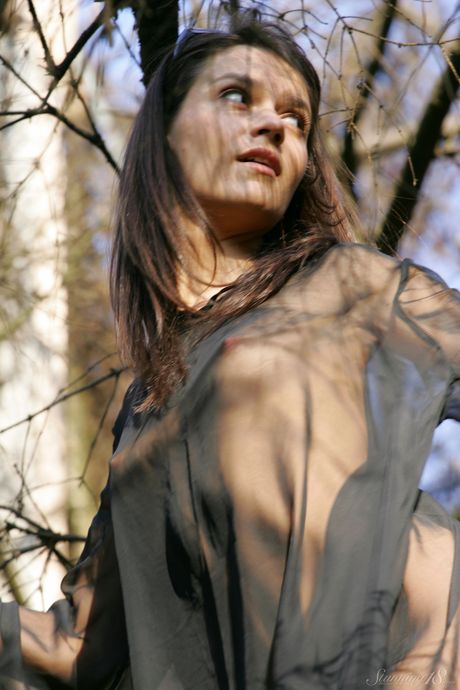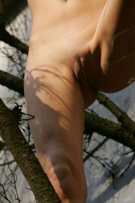 Stunning 18: Thin teen Roza A exhibits nudity in the forest & shows her shaved pussy up close
