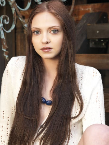 Sex Art: Thin teen Star Renea gets naked in high heels on a wooden staircase