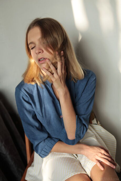 Met Art: Ukrainian babe Nora Pace strips naked and demonstrates her big tits and twat