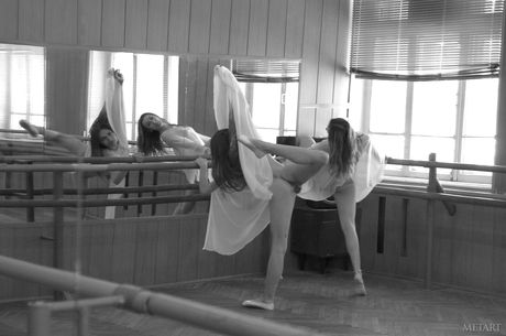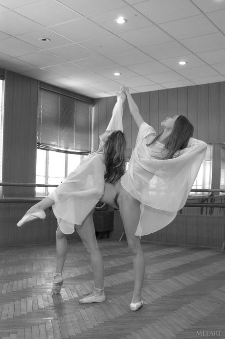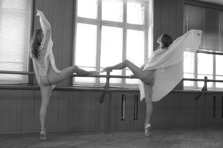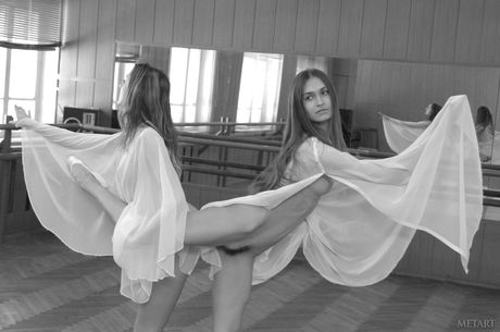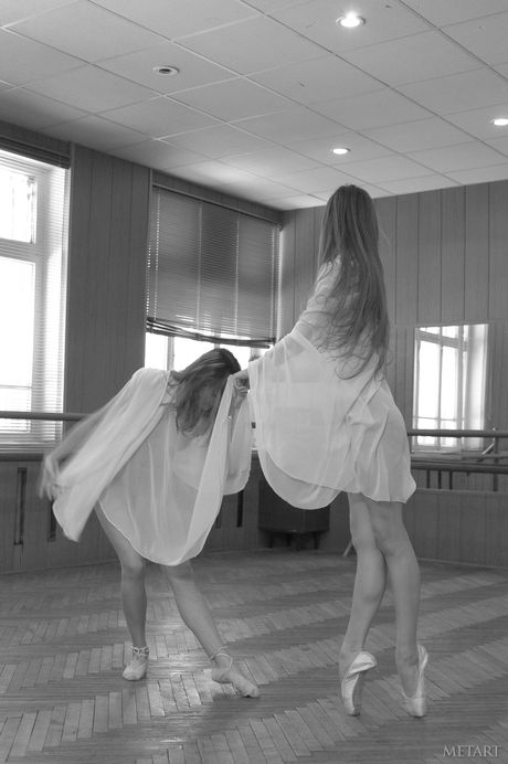 Met Art: Ukrainian erotic model Jasmine A and her girlfriend Uliya E pose nude in a dance studio