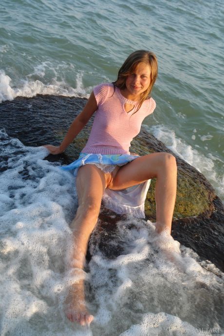 Met Art: Ukrainian lovely Petra E gets naked on a beach in a seductive way
