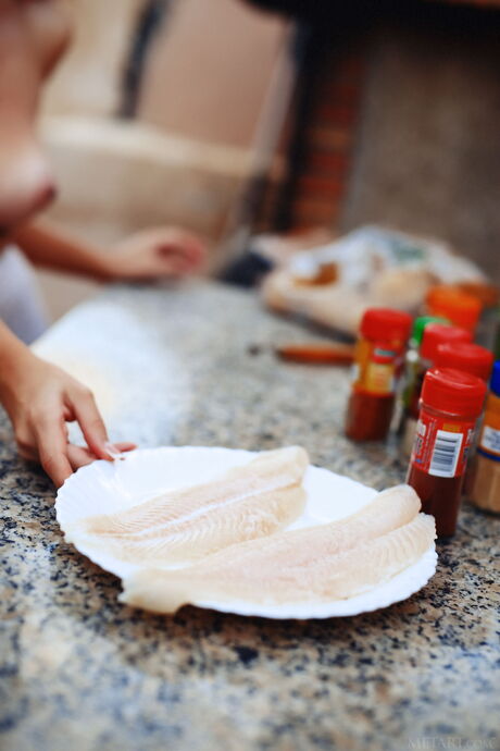 Met Art: Ukrainian venus Niemira shows her big tits and bald pussy in the kitchen