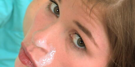 Pure 18: Very attractive american young Lara Brookes in skirt blowing rod and enjoys a cum shot on her face