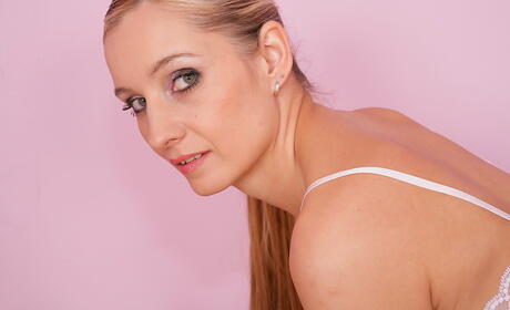 Karups Older Women: Very attractive blonde milf Monica baring tiny tits and jerking off
