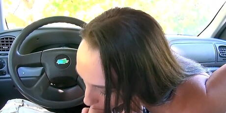 Street Blowjobs: Very attractive dark hair teen Scarlett sucks on big cock
