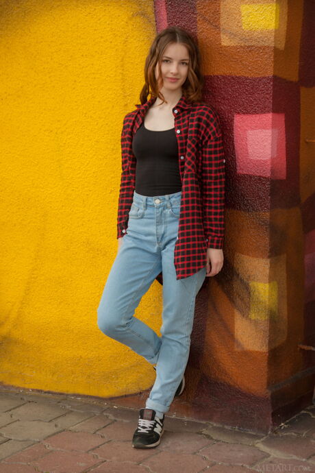 Met Art: Winsome teen Cherish removes her socks before showing her bald pussy in the nude