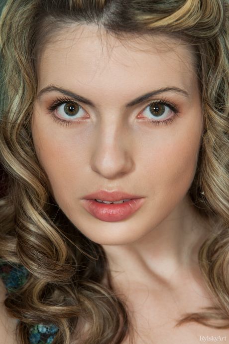 Rylsky Art: Young brunette Maggie gets completely naked on a kitchen counter