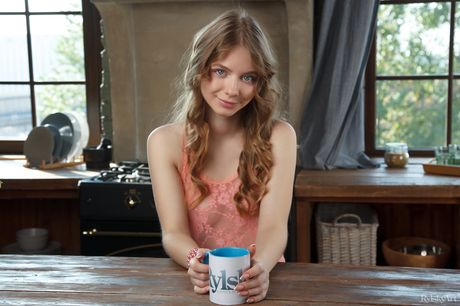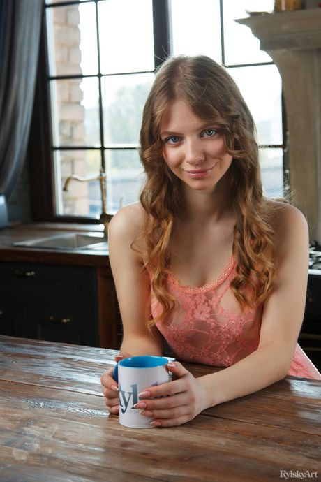 Rylsky Art: Young girl Siya gets completely naked on a kitchen table over a cup of coffee