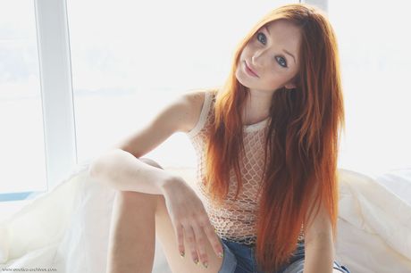 Errotica Archives: Young redhead Micca takes it all off on a kitchen counter by herself