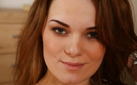 Wet And Pissy: Attraenti lituani Capelli scuri Cutie Becky Berry mostra il suo sedere in pantaloncini e riempie la figa con un giocattolo