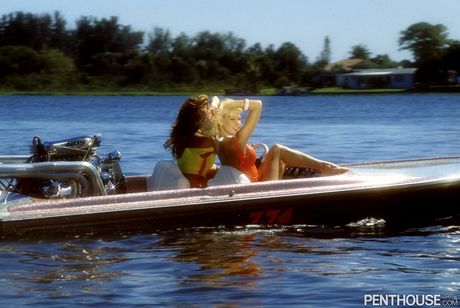 Penthouse Gold: Blonde Babes Anna Romeo e Brooke Lane giocano tra loro fiche all'aperto