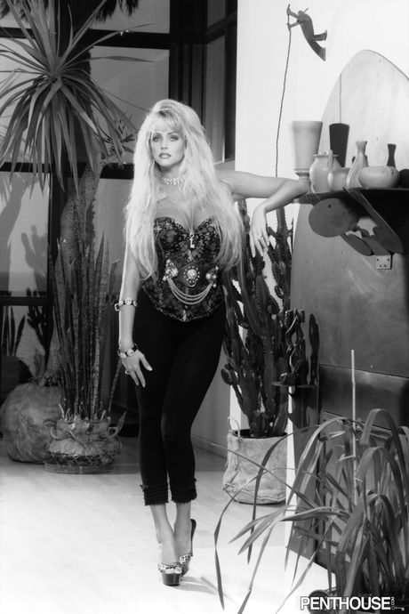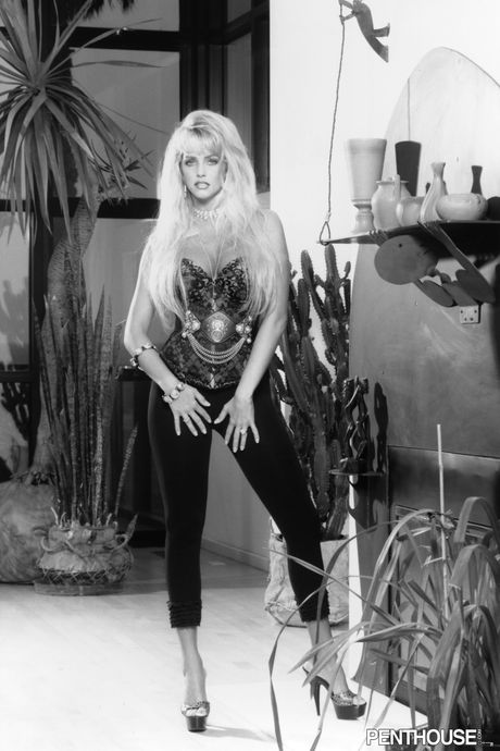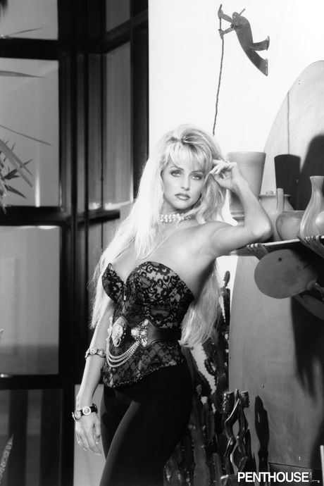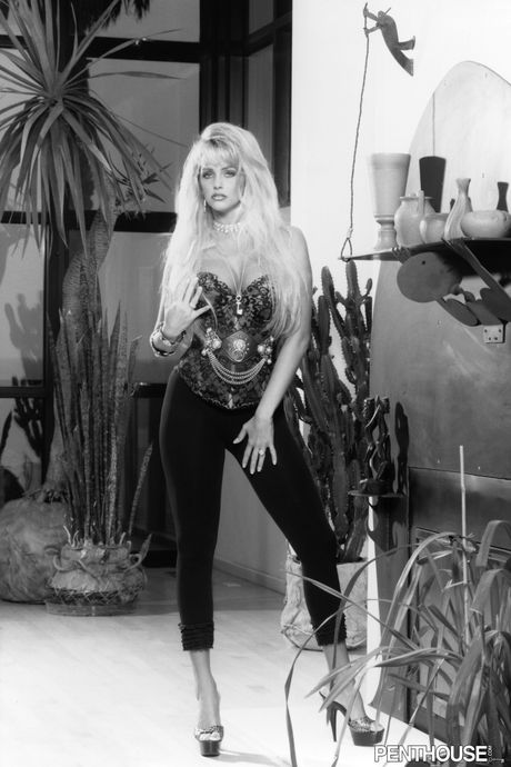 Penthouse Gold: Blonde Centerfold Elizabeth Hilden espone le sue grandi tette e si strofina il manto
