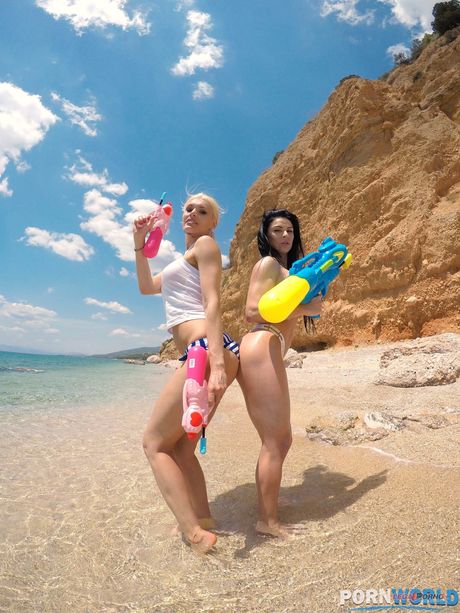 Porn World: Blonde milf kitana esca inna e la sua calda gf inna innaki giocano con pistole ad acqua