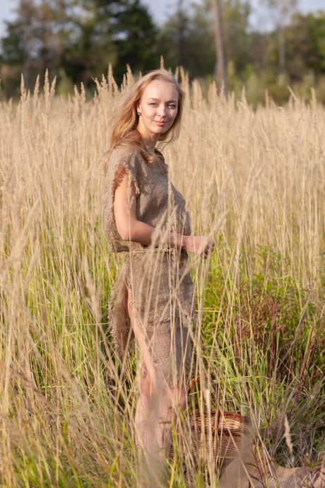 Stunning 18: Bionda adolescente Jessie U mette in evidenza le sue tette vivace mentre era nuda in erbe alte