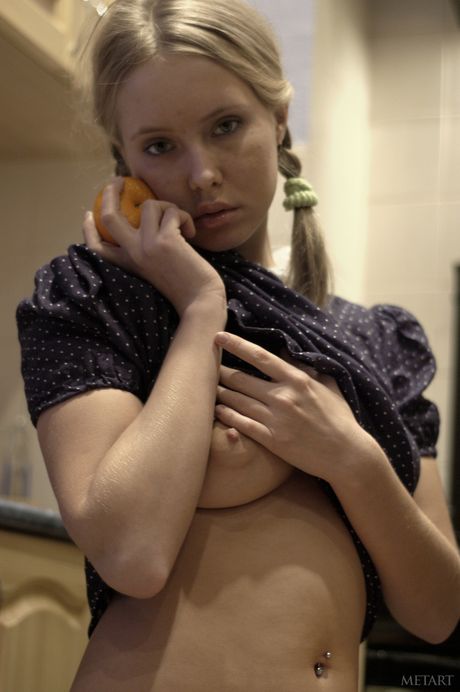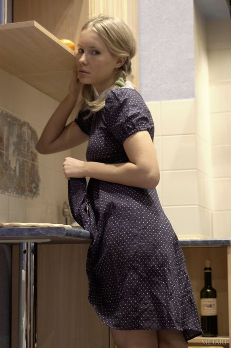 Met Art: Koika Teen Blonde diventa nuda con sicurezza mentre indossa trecce