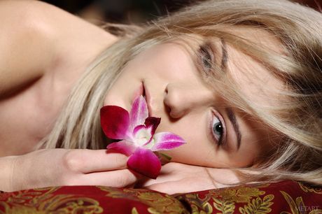 Met Art: Bionda adolescente Niki Mey si nutre nei tacchi prima di un crema in un letto