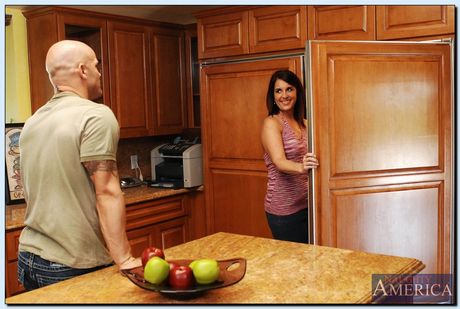 Naughty America: Curvy Milf Kasandra Blue prende la sua figa matura scopata in cucina