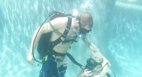 Big Tits In Sports: Deluxe Blonde Angelina Ashe Suck Dick e scopa nella sua figa vicino alla piscina