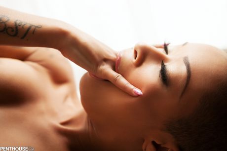 Penthouse Gold: Ebony centrocpold skin strips e dita figa bagnate in un assolo