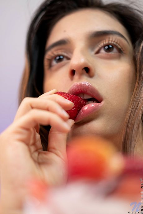 Nubiles: Hot babe Uzza lece il suo corpo prima di allargare la figa nel nudo