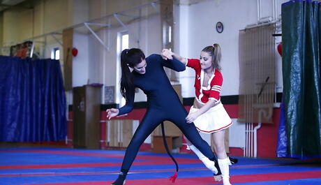 Nude Fight Club: Donne calde Mira Sunset e Celine Doll in Action lesbica Catfight