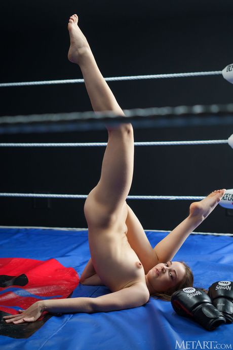 Met Art: Lean Teen Purr Simona rimuove i suoi guanti da boxe per posare nude su un anello