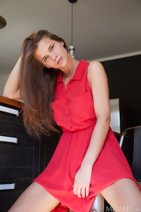 Met Art: Lean Teen Sarah Kay si sposta in cucina prima di mostrare la sua figa calva