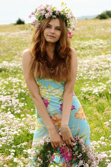 Met Art: Lean Teen Yuki strisce e posa nuda in un campo di fiori selvatici