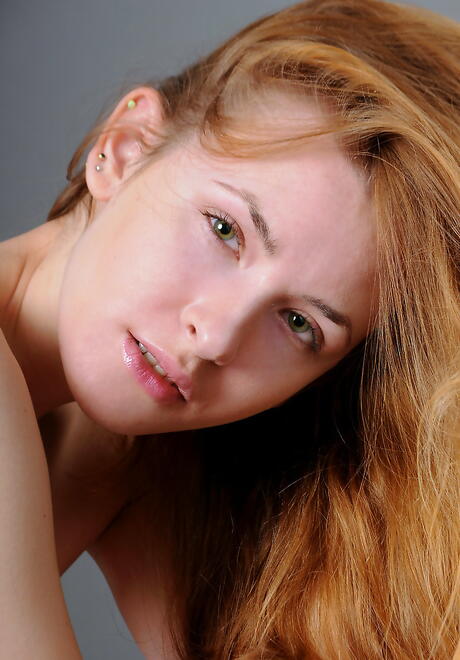 Met Art: Il succulento teenagring dai capelli rossi A in gonna espone grandi tette e allarga le gambe